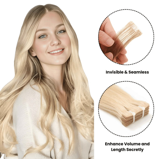 Champagne Blonde Invisible Tape In Hair Extensions, Virgin Human Hair, 20 pcs